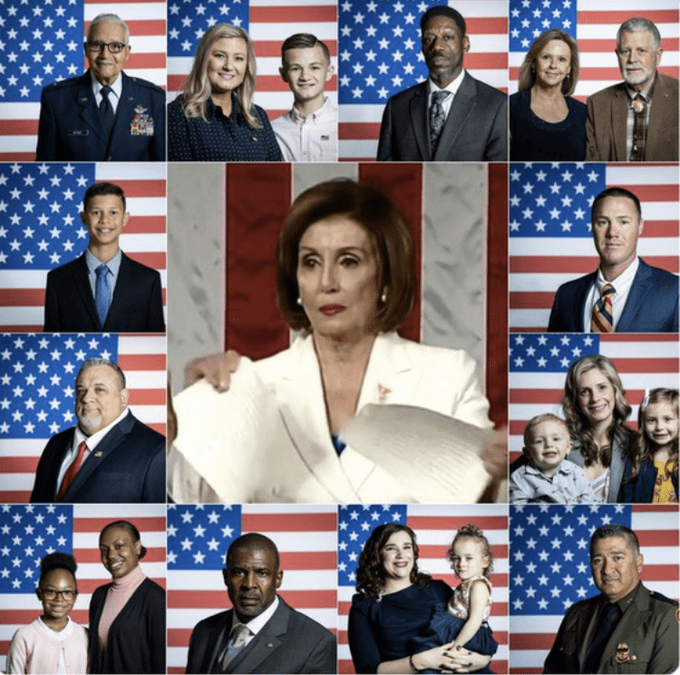 Trump, in that speech, had just honored many who had sacrificed, and given much for this country, including returning and wounded war veterans. Fallen soldiers that will never come home. Families impacted by murders committed in sanctuary cities by repeatedly released illegal immigrant offenders. Newly pardoned drug inmates struggling to make their life better. Also cited was a 100 year old black WWII airman, and his honor student offspring, with their eyes cast towards the future. Struggling mothers and inner-city schoolgirls were also praised in that speech that Pelosi viewed as so pernicious and vile. When she tore that speech she tore all the names of those mentioned and remembered. She ripped the honor and respect richly deserved by the many recipients. She tore at the real heart and soul of America. She shredded the essential fabric of this nation, what really makes this country great, the people that do what they do, day to day, in order to provide what they can for those that they care for. Only to have the wind to increase tempestuously as a result. https://www.youtube.com/watch?v=ENf0j8lM0b8 These are the words of that wind that Nancy, and the Democrats, found so aggravating and offensive, the closing moments of Trump’s speech –